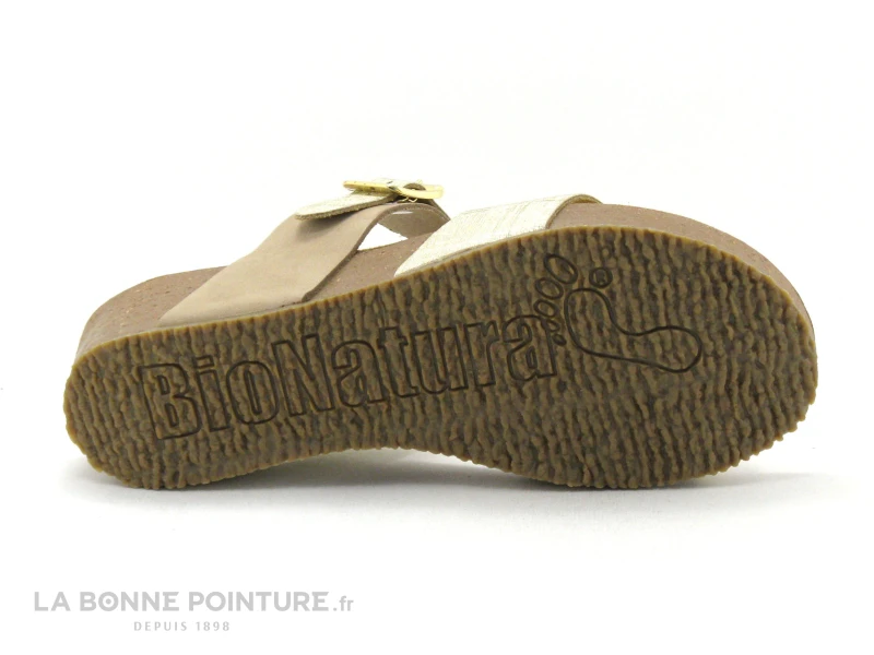 Les tongs anatomiques à talon compensé BioNatura 28A729, des tongs dorées et brillantes au meilleur rapport qualité/prix pour la saison estivale !
