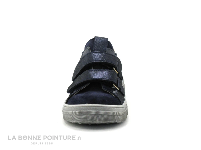 La tige des sneakers bleu marine fille mélange un cuir velours et un cuir brillant métallisé, avec des parties vernies sur le dessus.