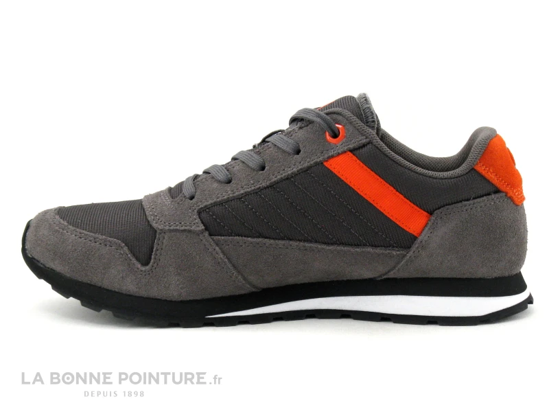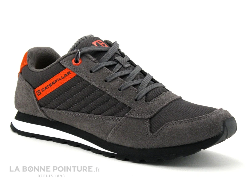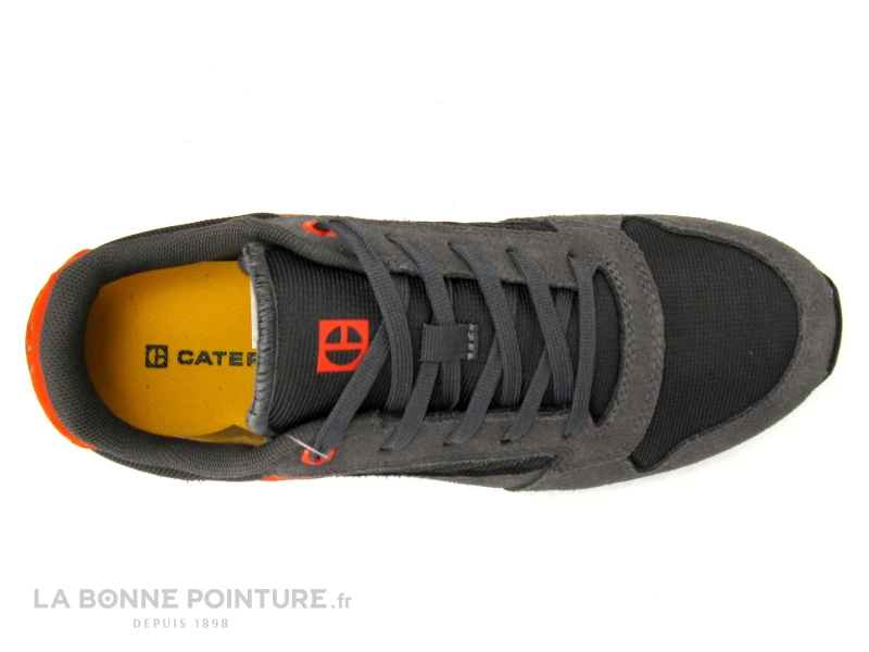 La basket Caterpillar Ventura associe cuir velours et textile aux tons de gris et d’orange, avec une tige de chaussure imperméabilisée.
