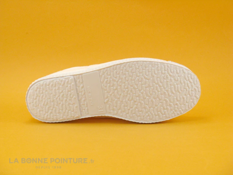 La semelle de marche des baskets toile enfant Cienta est en caoutchouc naturel blanc, elle remonte sur la pointe afin de protéger les orteils.