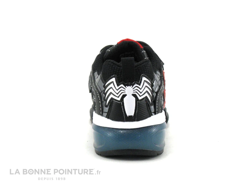 Inspirée du grand ennemi de Spider-Man Venom, la basket clignotante Marvel possède des lumières leds qui clignotent à l’arrière de la chaussure, sur la partie bleue translucide de la semelle.