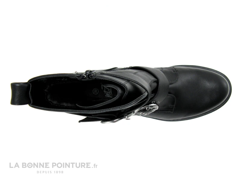 Cette bottine Femme est en simili cuir noir, avec la pointe arrondie.