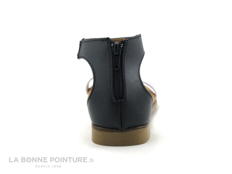 Ce nu-pieds zippé Femme Jordana associe un cuir bleu marine et un cuir argenté.