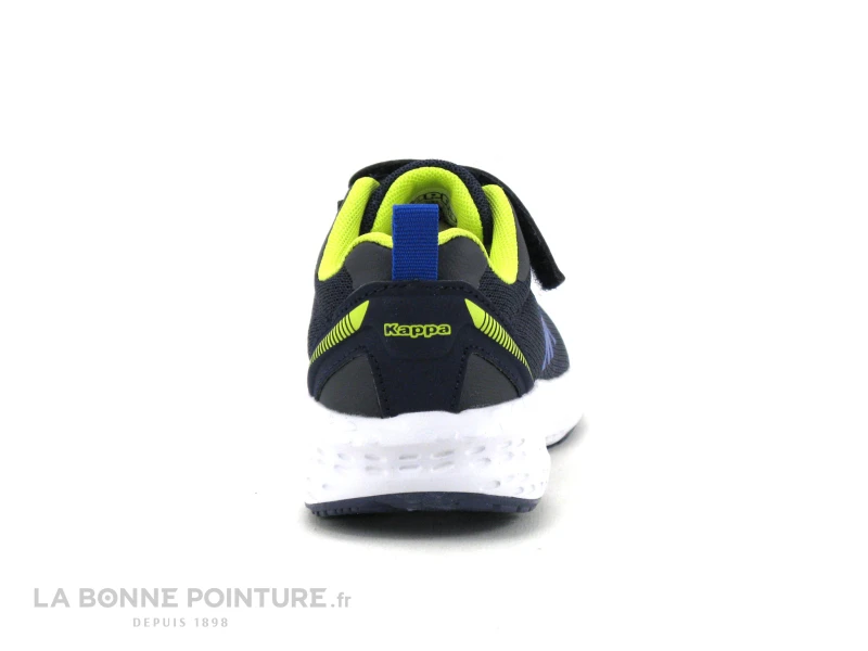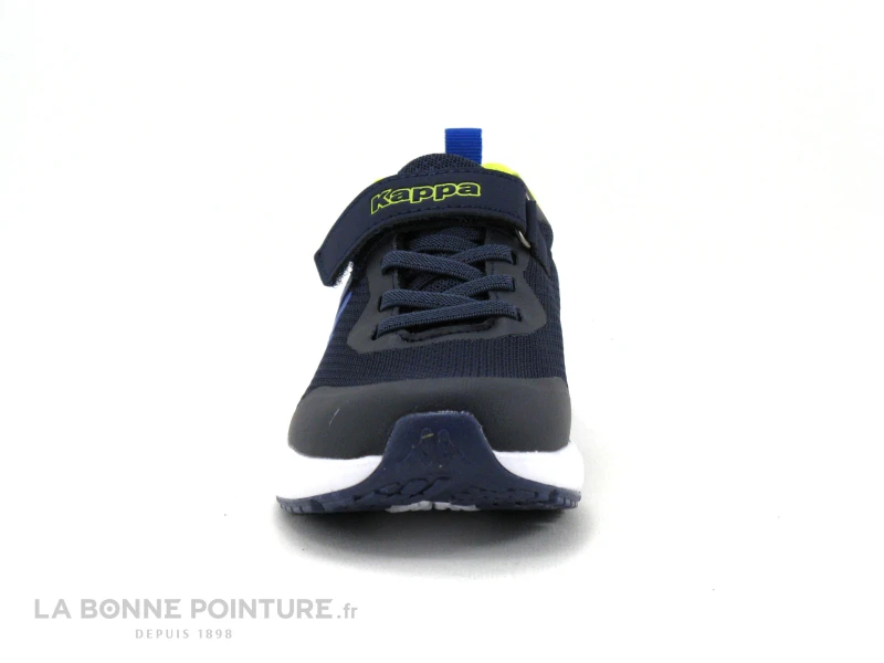 Le logo Kappa s’affiche en bleu royal sur le côté externe de la basket enfant.