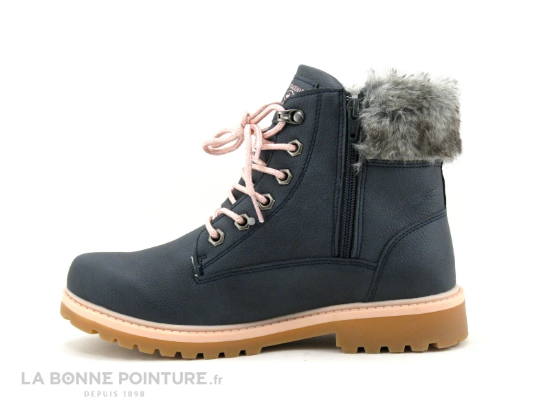 Cette chaussure montante hiver fille Lico est en simili cuir bleu marine, avec fourrure autour de la cheville.