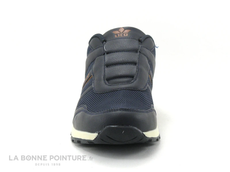 Cette basket mode Homme Lico Marek mélange textile et simili cuir bleu marine, avec un peu de marron camel à l’arrière.
