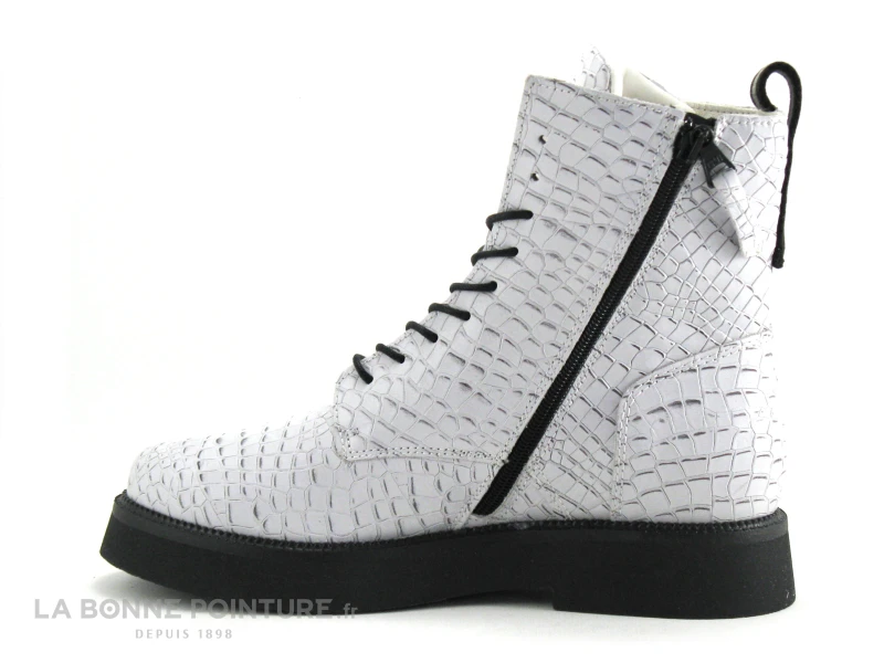 Les bottines en cuir blanc effet croco Mjus 565213, des chaussures montantes assurément tendance et de grande qualité, on craque, impossible de faire autrement !