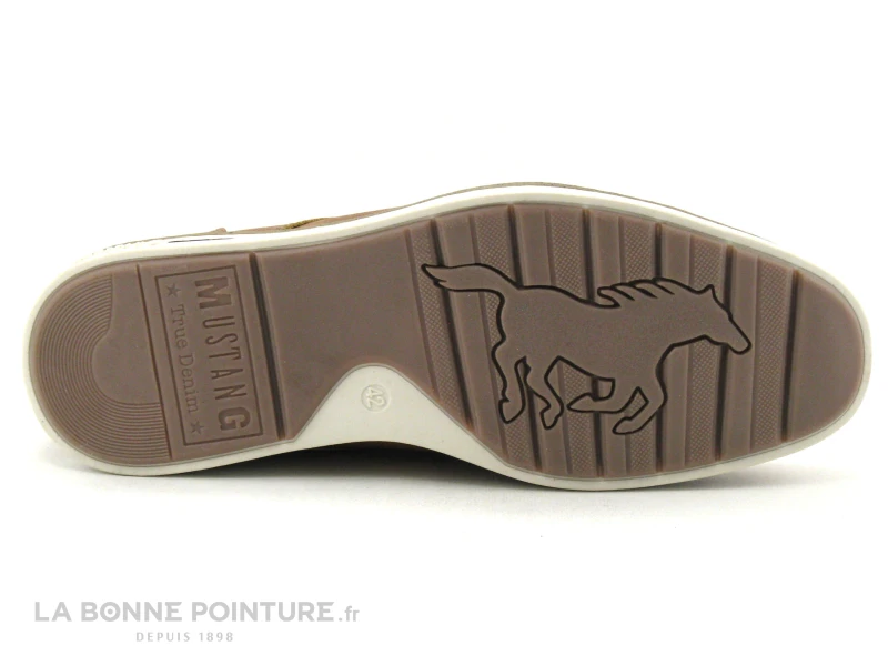 La semelle de marche du derby Homme marron est souple et assez légère, avec la marque Mustang en relief à l’arrière.