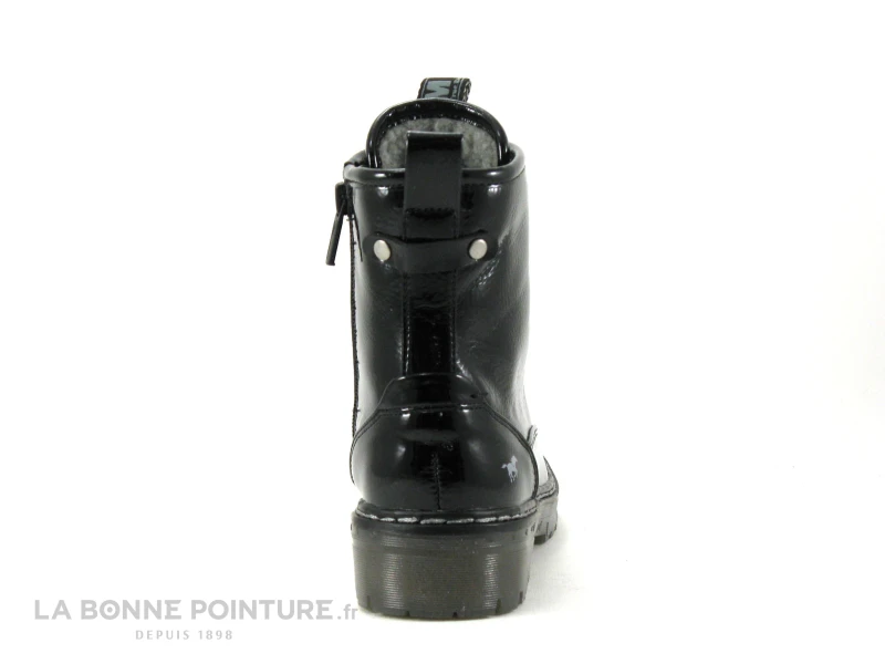 Ce bottillon fille Mustang True Denim est en simili cuir noir verni.