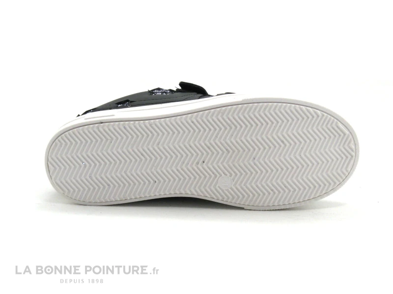 Ces sneakers enfant à petit prix sont noir mat, avec des étoiles pailletées argent sur le côté, comme le contrefort à l’arrière de la chaussure.