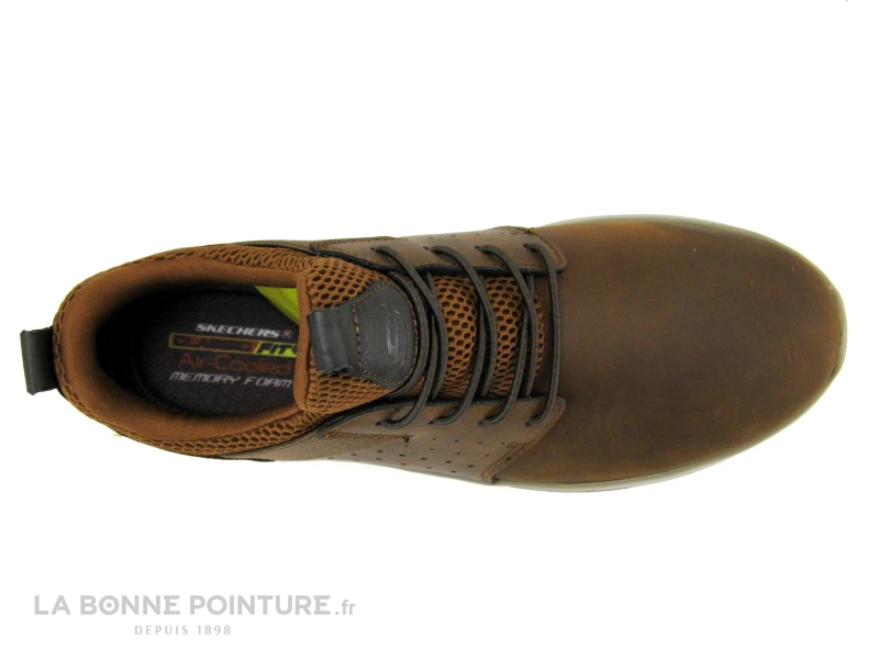 L’intérieur des baskets marron Skechers Delson Axton est en tissu, avec une semelle à mémoire de forme Skechers Goga mat® Arch Skechers Classic Fit.
