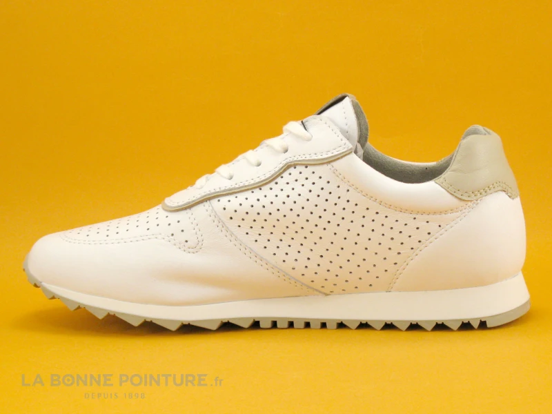 Cette basket basse Femme Tamaris 1-23614-20 est en cuir blanc, avec un peu de beige sur la tige.